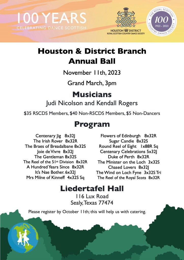 This year, we are thrilled to be celebrating the centenary of the RSCDS with our Annual Ball on November 11th, 2023!